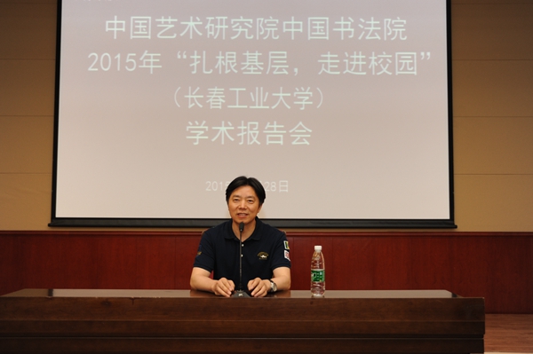 2015年6月29日上午,中国艺术研究院中国书法院“深入生活,扎根人民”主题实践活动——“扎根基层、走进校园”书法作品展在长春工业大学图书馆隆重开幕。本次活动是中国艺术研究院中国书法院的7名书法家“扎根基层,走进院校”的第一站,更是贯彻落实习近平总书记文艺座谈会讲话精神,传承和弘扬中华优秀传统文化,引导当地艺术创作,全面普及高等院校对中国书法的认识和感情的一次重要尝试。